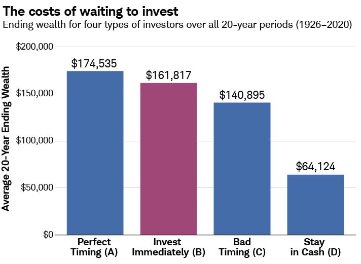 Some investors are tempted to wait for the "right" moment to invest. But starting early, and regularly investing what you can, usually takes you a lot further than waiting.
